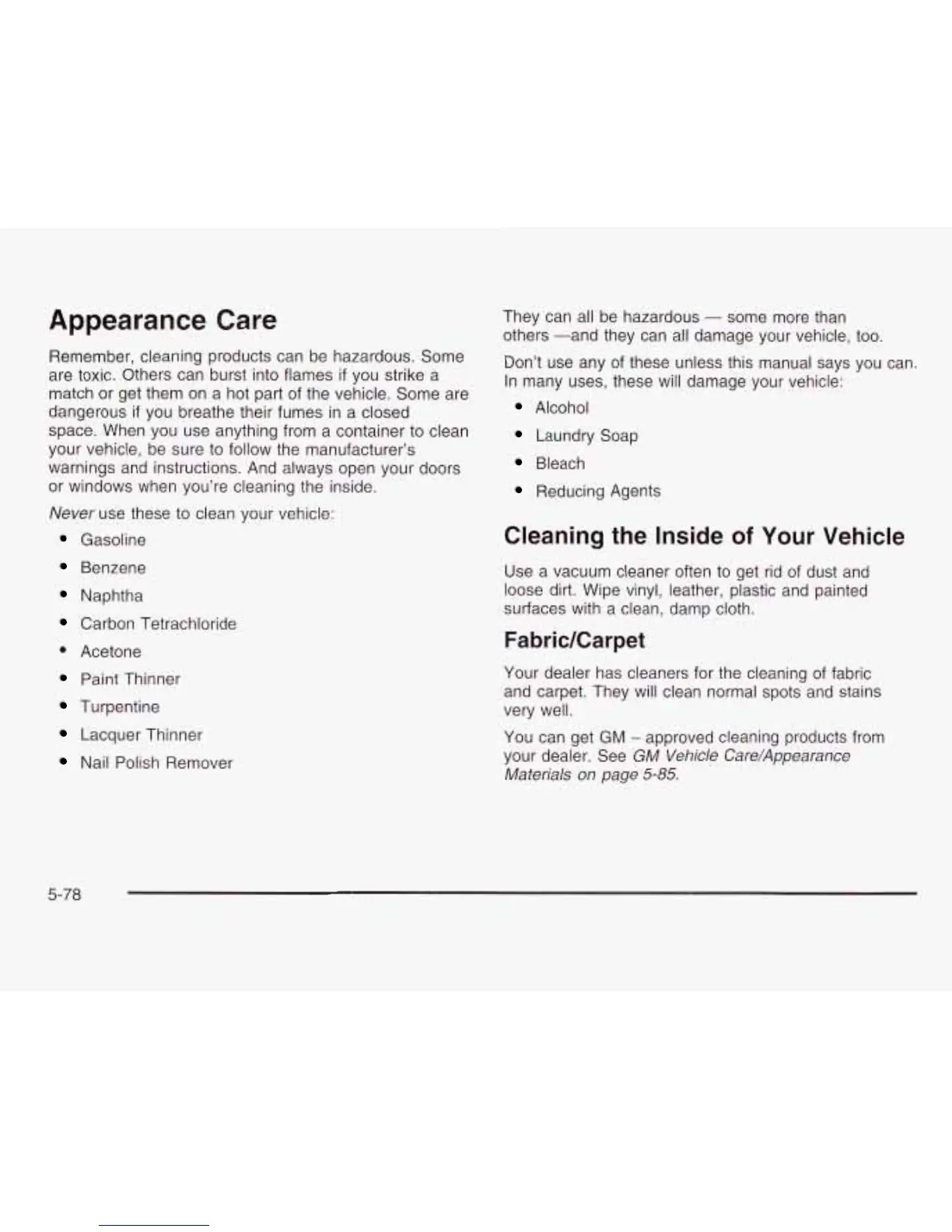 loose dirt. Wipe vinyl, leather, plastic and painted