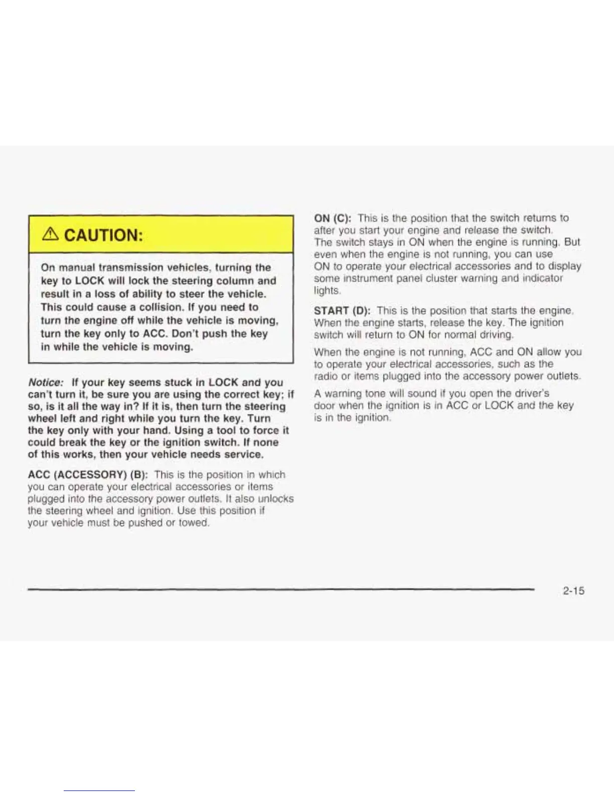 On manual transmission vehicles, turning the