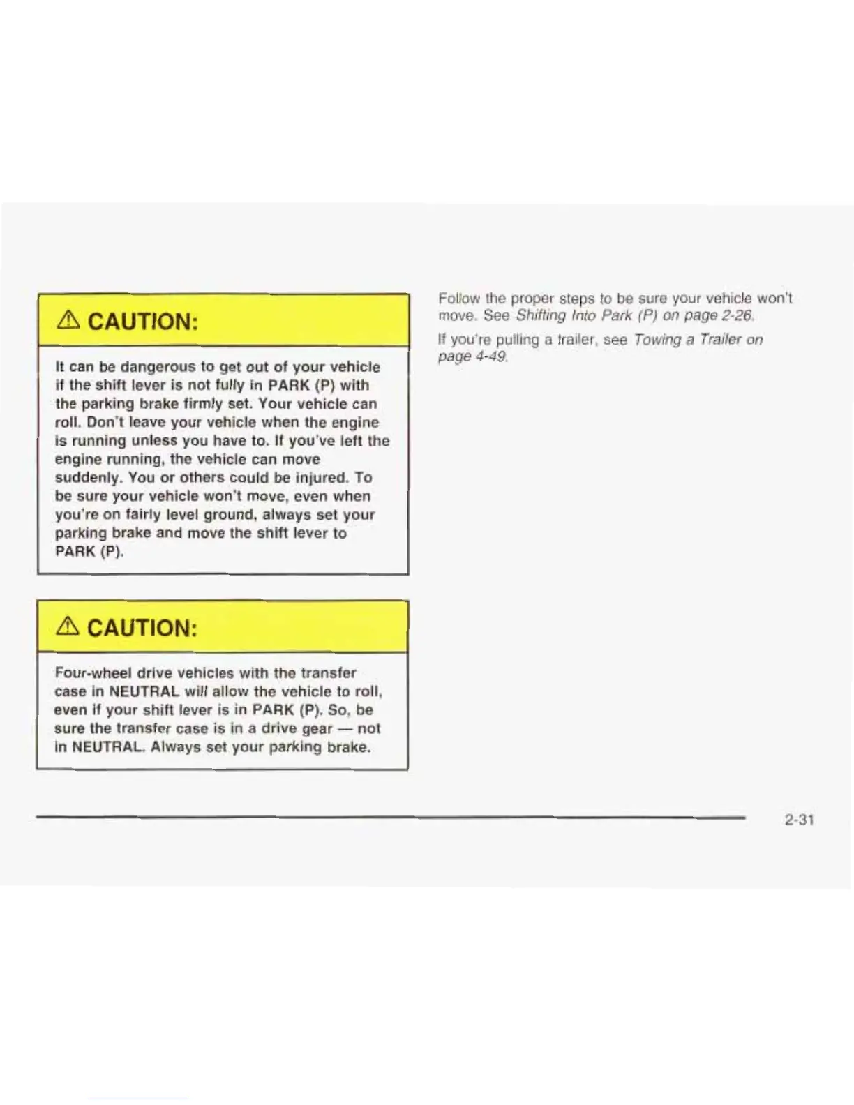 the parking brake firmly set. Your vehicle can