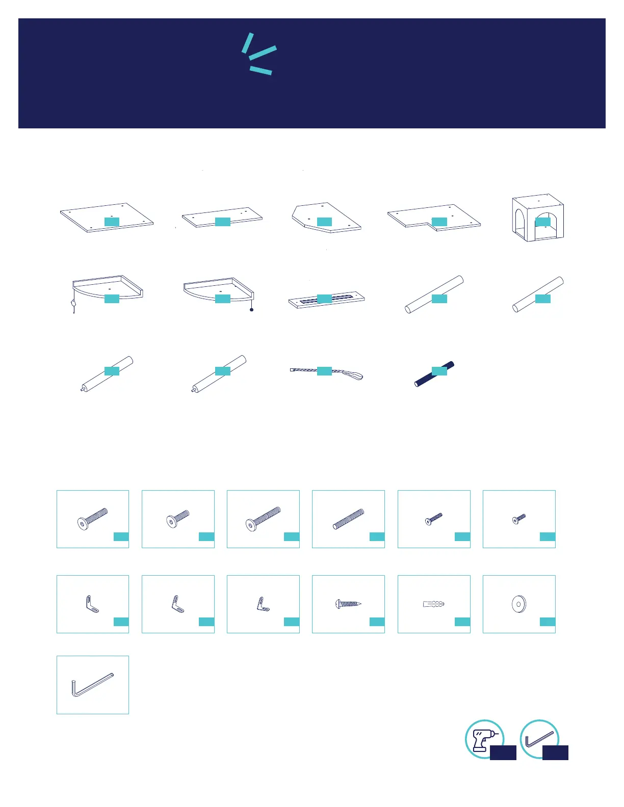 Prior to assembly, please be sure to identify and sort all parts shown below.