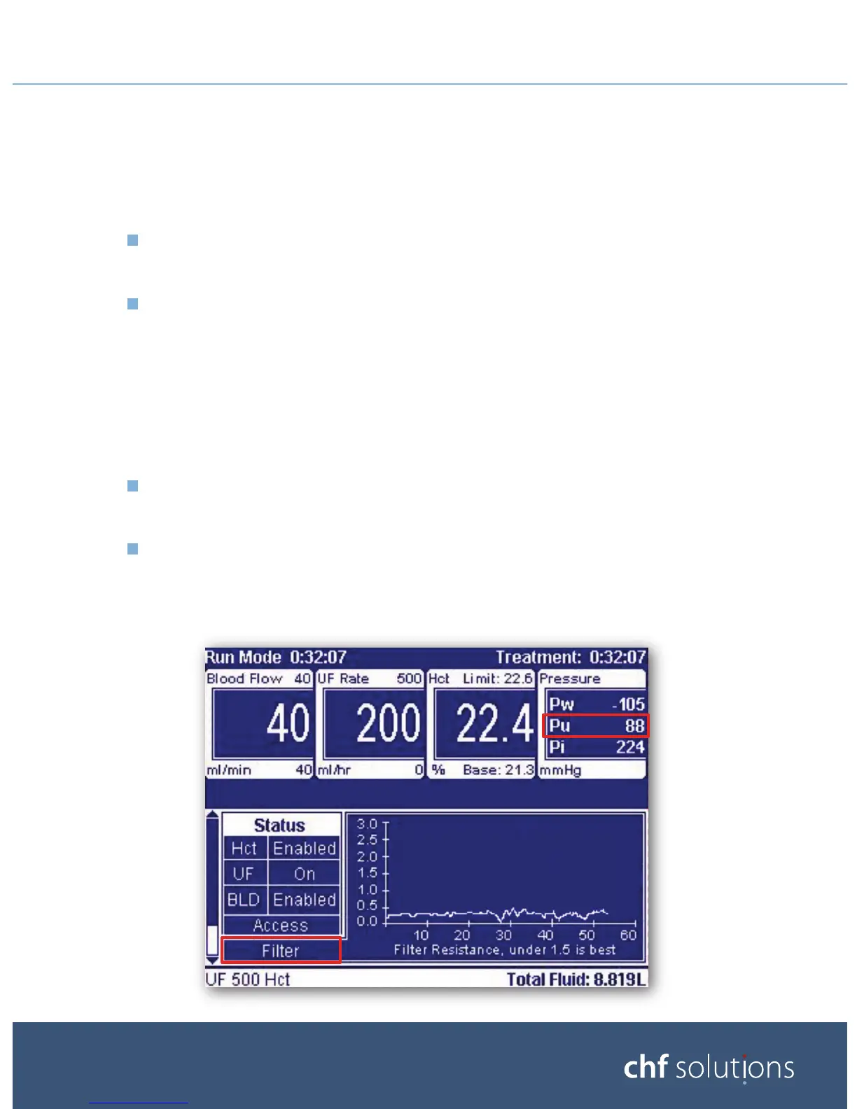 CHF Solutions aquadex FlexFlow - Pressure Readings: Filter; Ultrafiltrate Pressure (Pu); Filter Status and Resistance