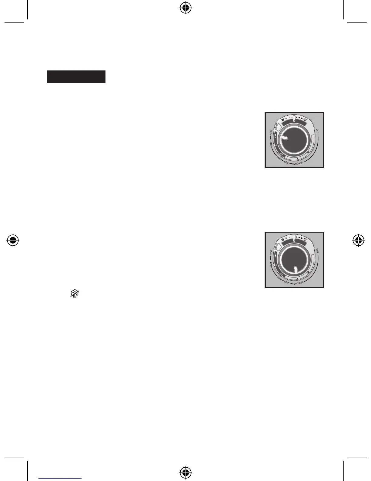 Setting Dial to select temperature setting. Linen, cotton, or