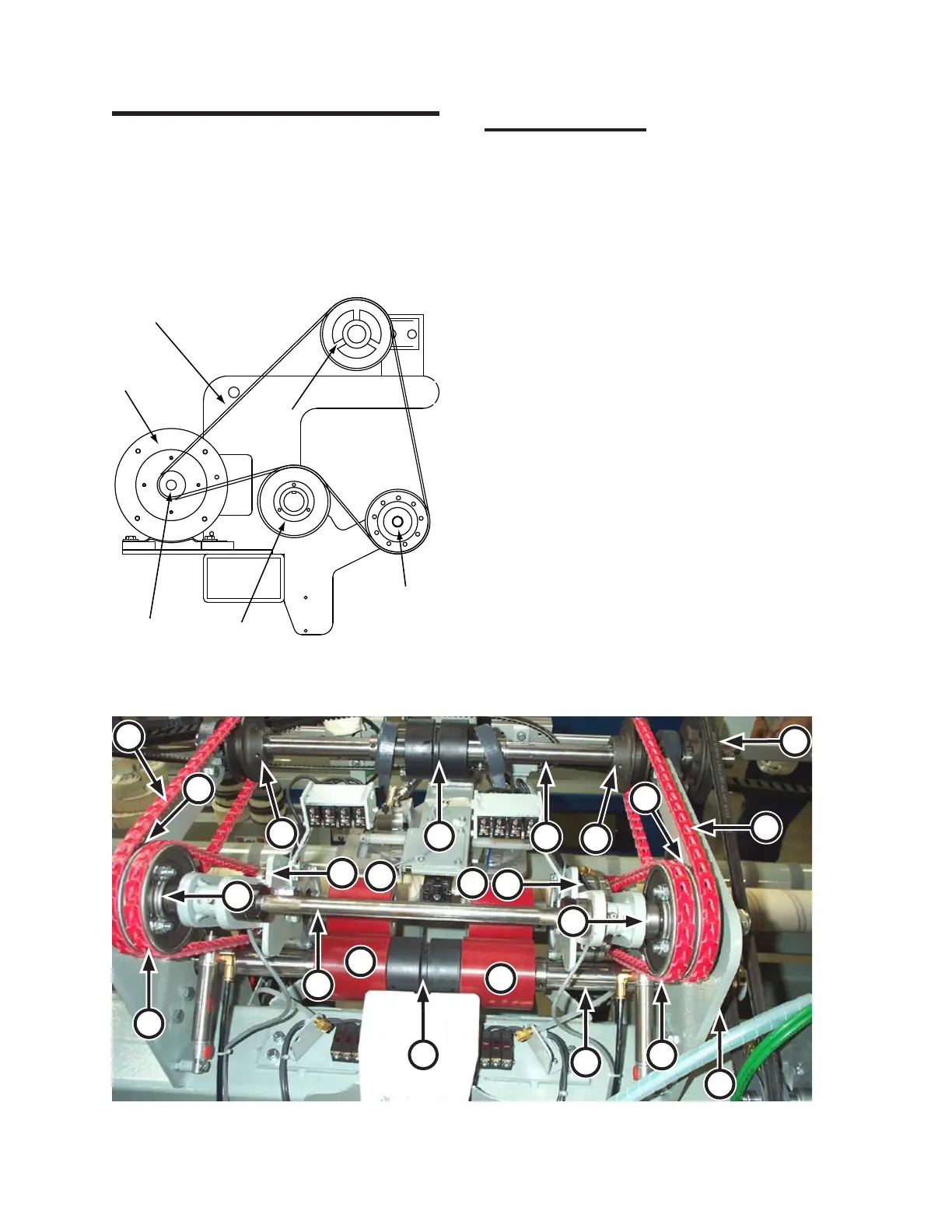 E) inlet belt drive pulleys. An idler pulley (F) is