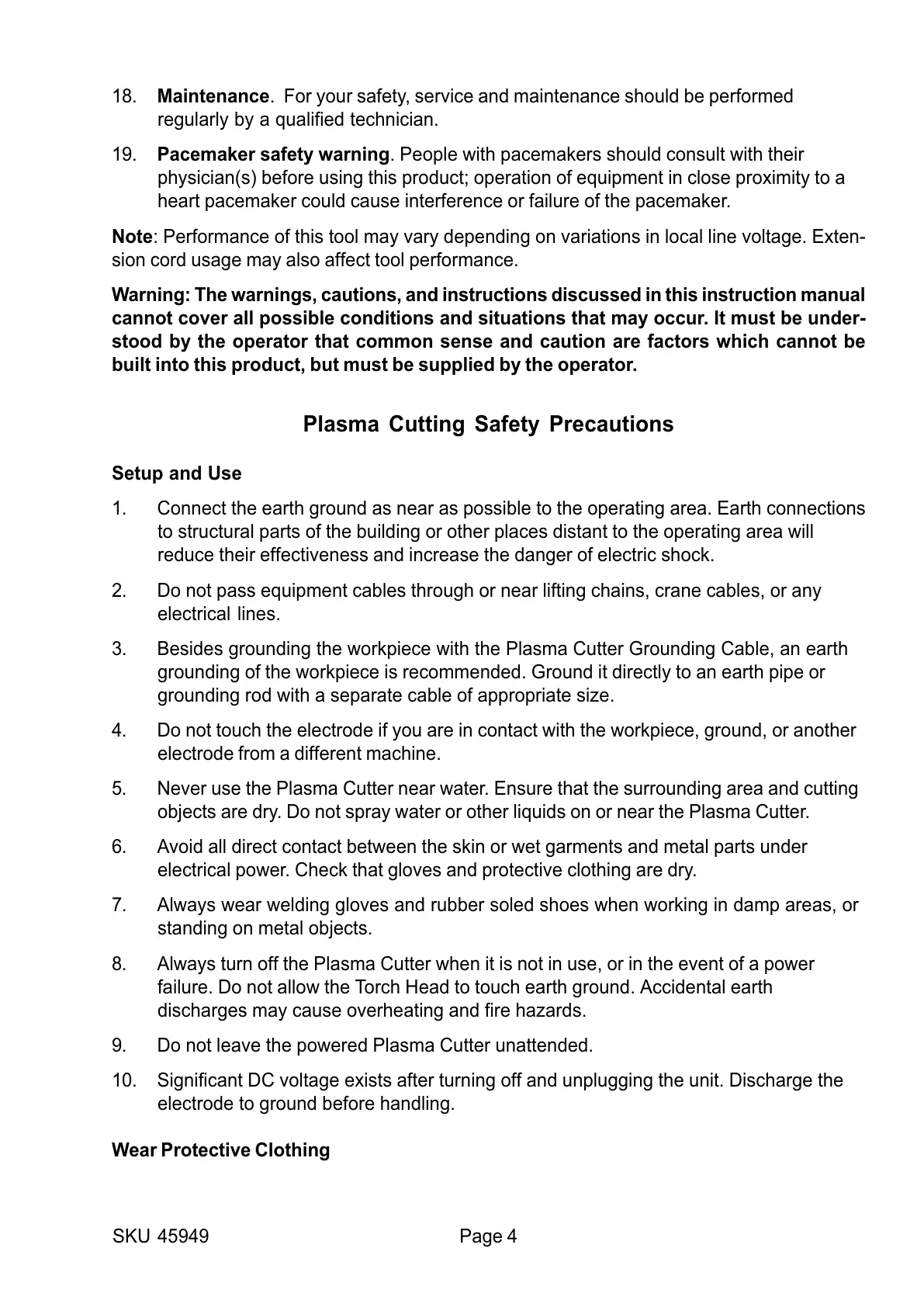 9. Do not leave the powered Plasma Cutter unattended.
