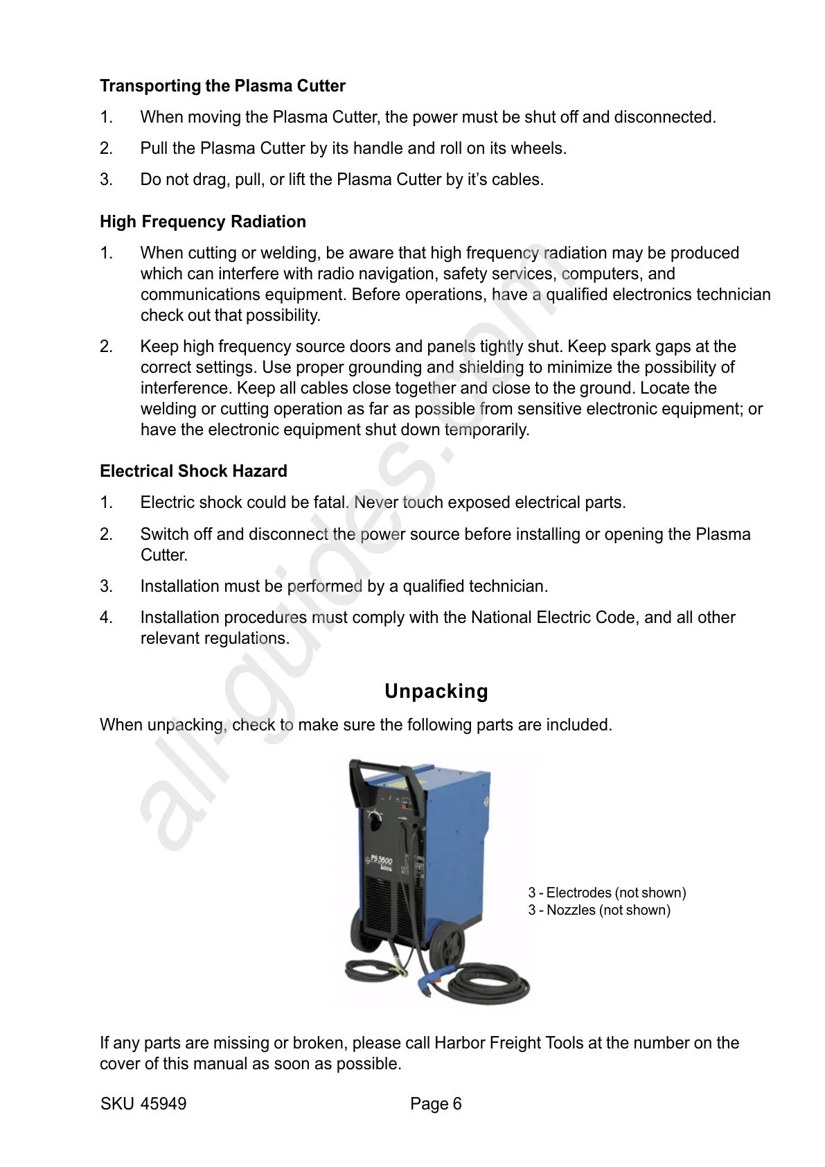 If any parts are missing or broken, please call Harbor Freight Tools at the number on the