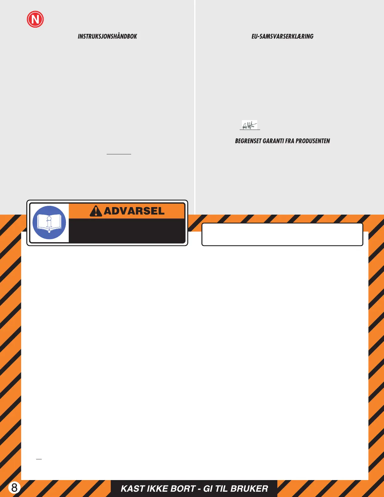 ! Bruk alltid slagfast øye- og ansiktsbeskyttelse når du bruker eller er i nærheten av