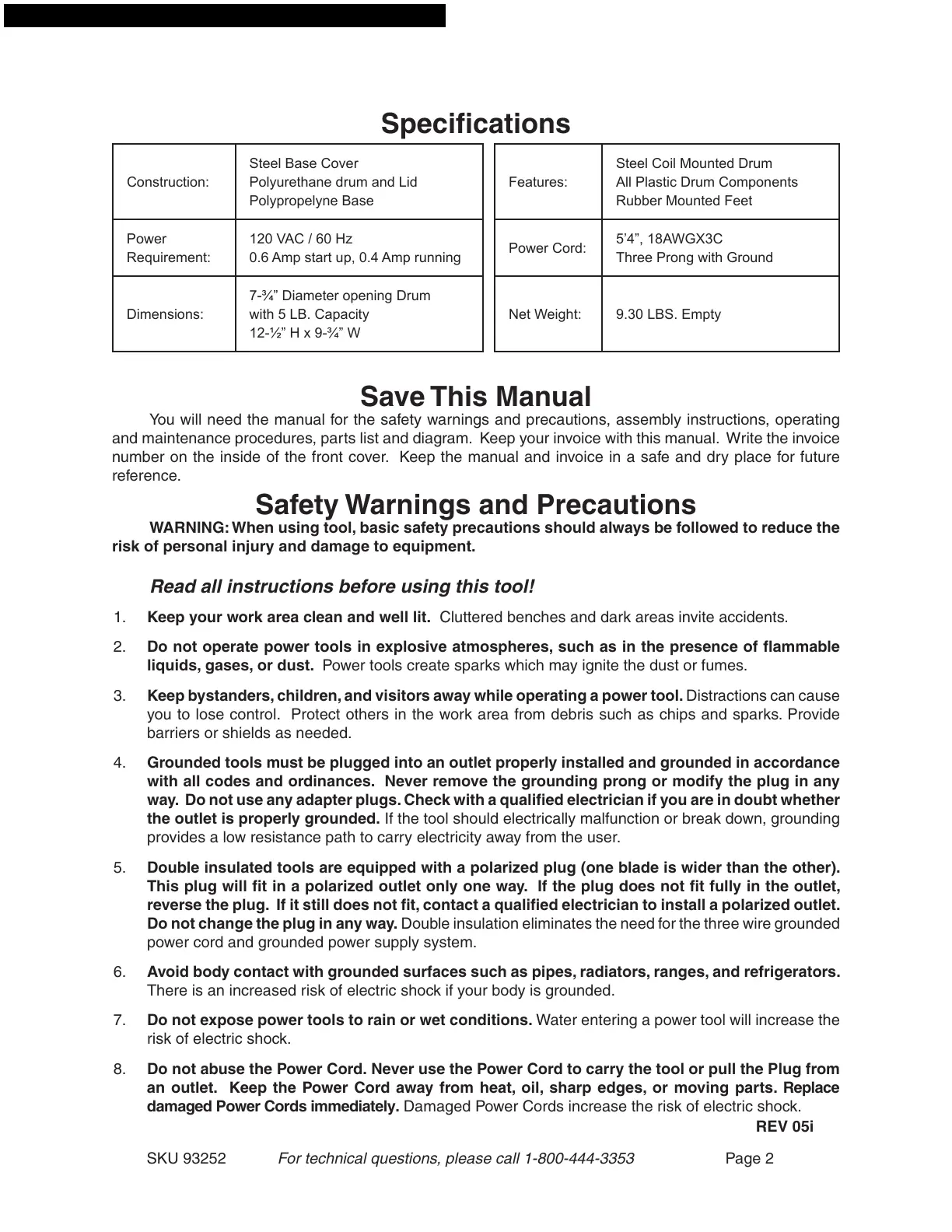 SKU 93252 For technical questions, please call 1-800-444-3353 Page 2