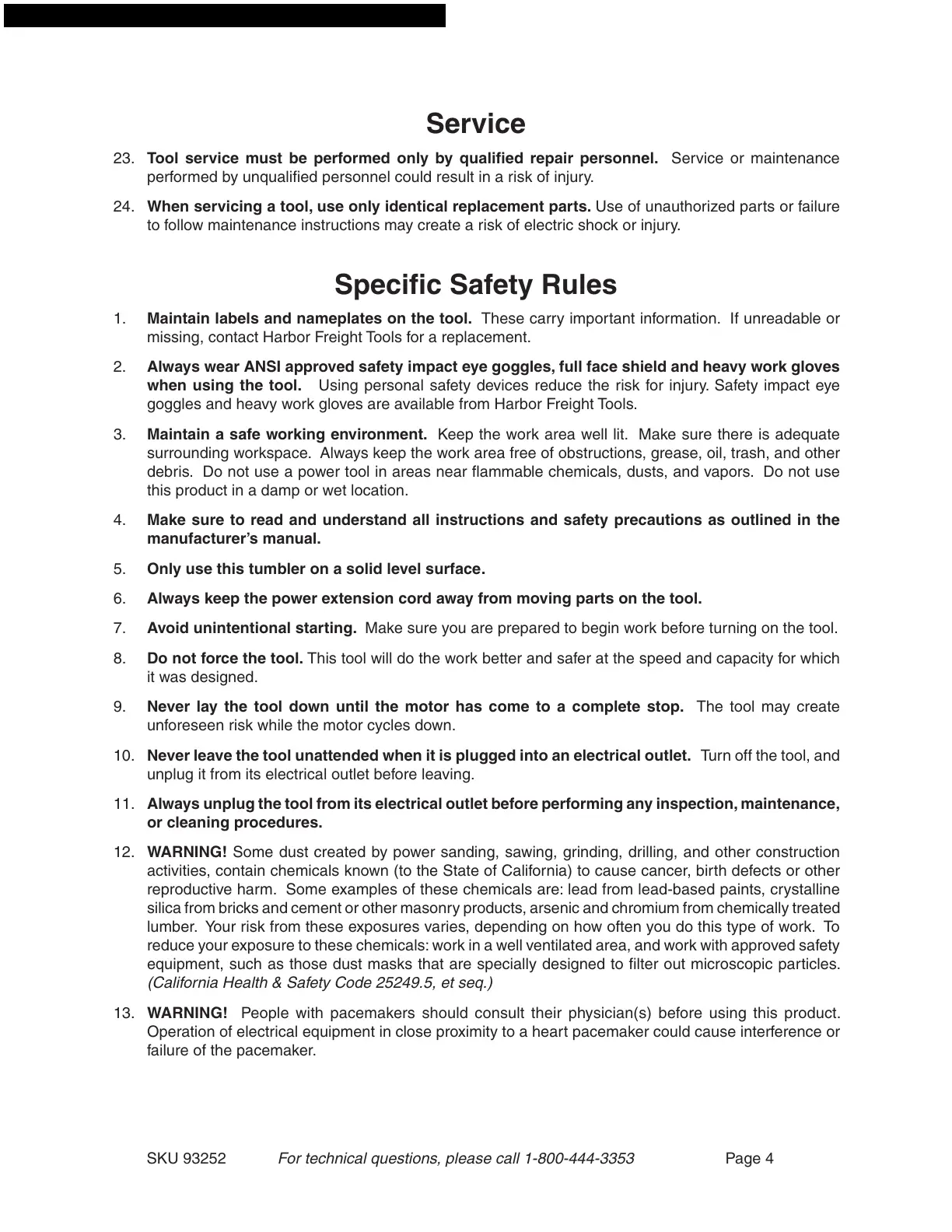 SKU 93252 For technical questions, please call 1-800-444-3353 Page 4