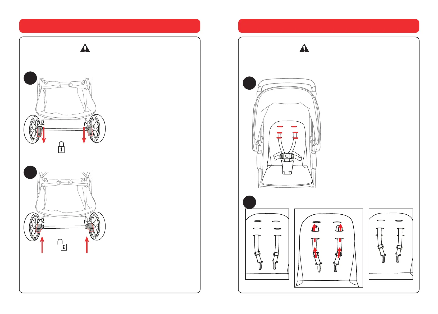 This stroller features three harness positions. Always use a harness position located