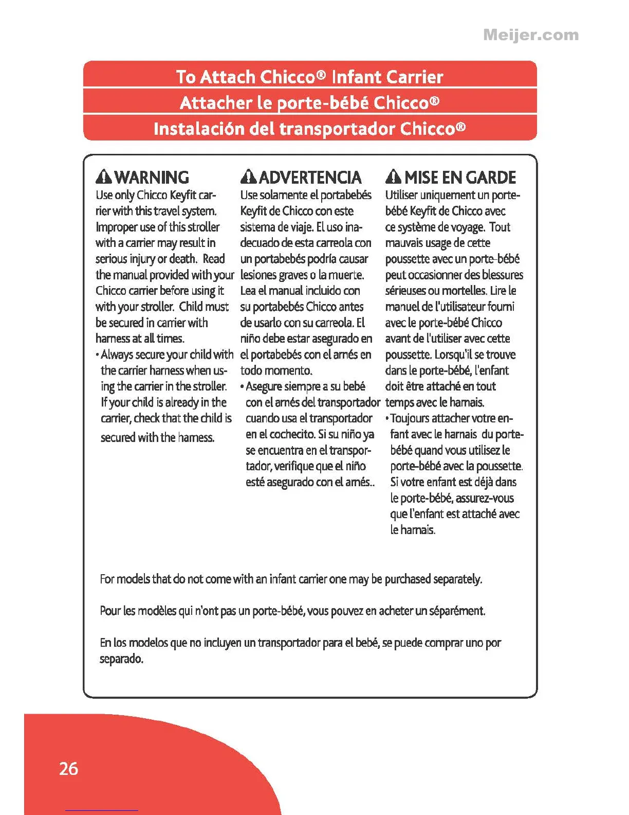 Chicco CORTINA - To Attach Chicco Infant Carrier; Safety Warnings for Carrier Attachment