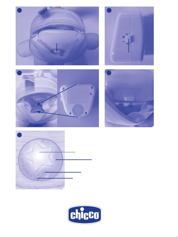 Per spegnere completamente il prodotto, aprire il velcro sul fondo del pupazzo e spostare il selettore