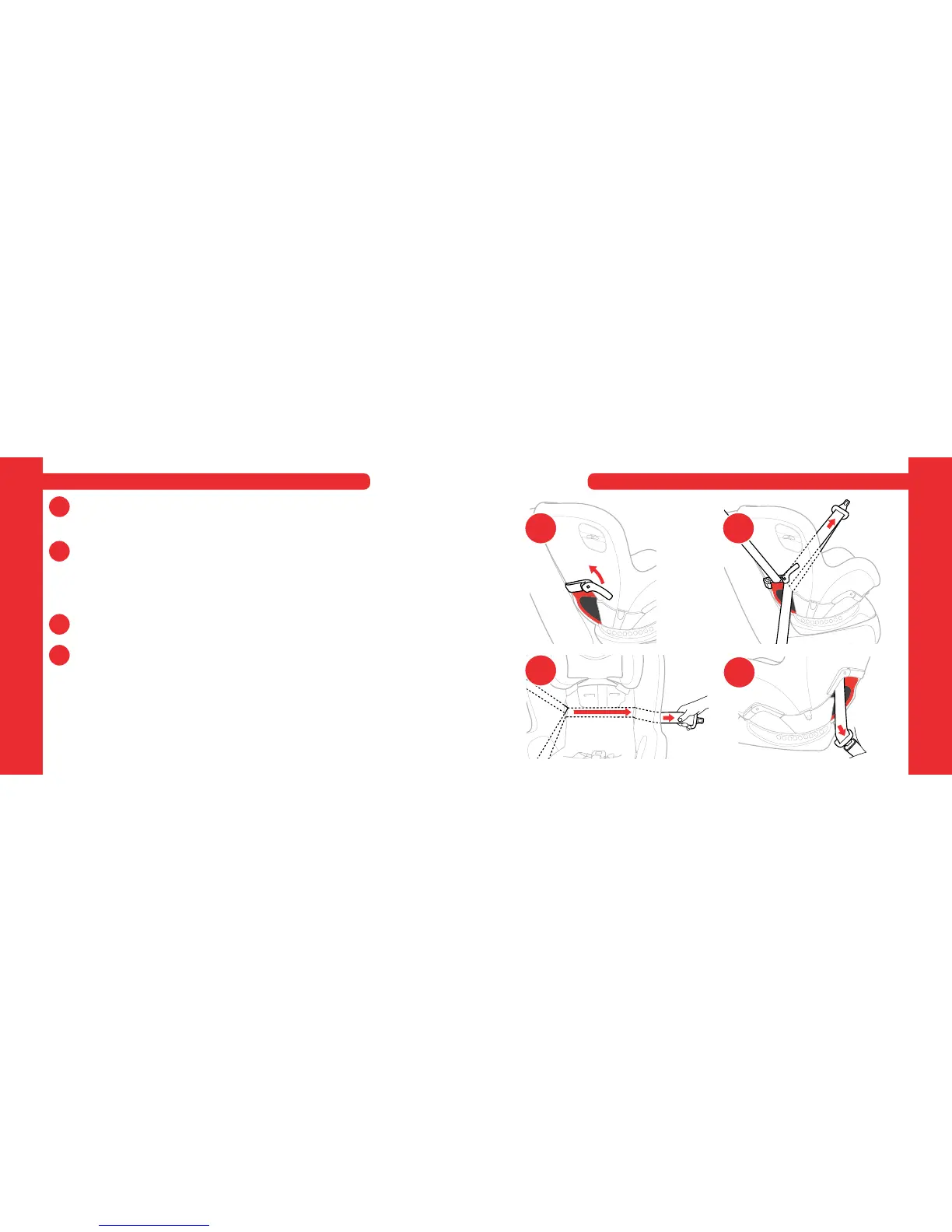 Pull the vehicle belt down through the red FORWARD-FACING seat