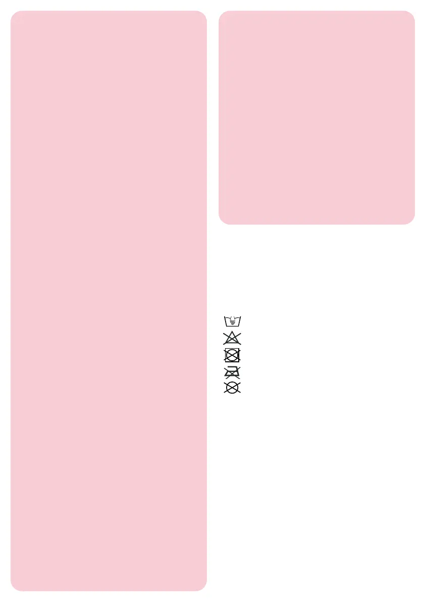 The washing symbols and relative meanings are indicated below: