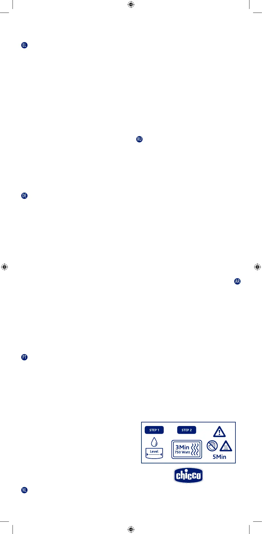 ΠΡΟΣΟΧΗ: Η συσκευασία, το νερό και οι πιπίλες μπορεί να είναι καυτά ακόμα και 5