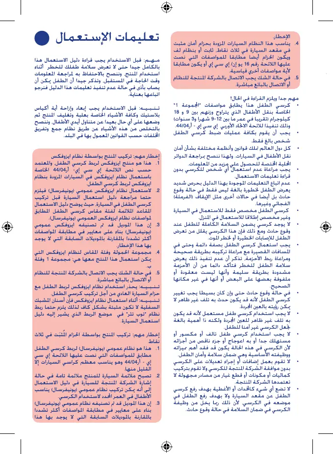 Chicco Xpace Isofix - Arabic Instructions for Use; ISOFIX System Installation (Arabic); 3-Point Safety Belt Installation (Arabic)