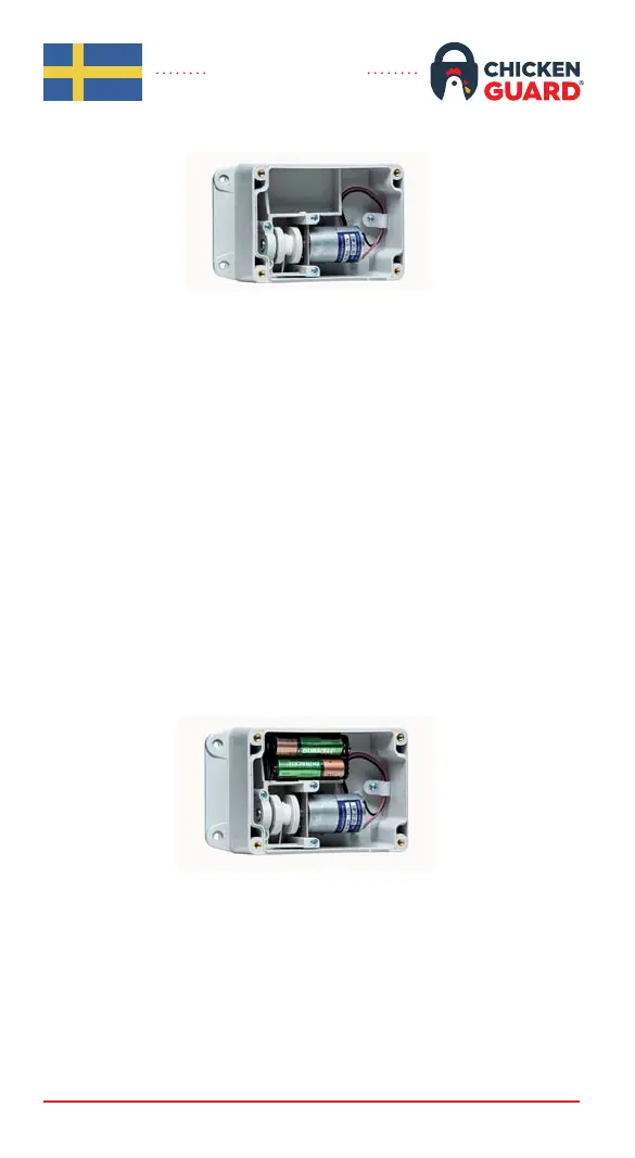 1. Fäst kontrollboxen på insidan/utsidan av ditt hönshus. (Använd