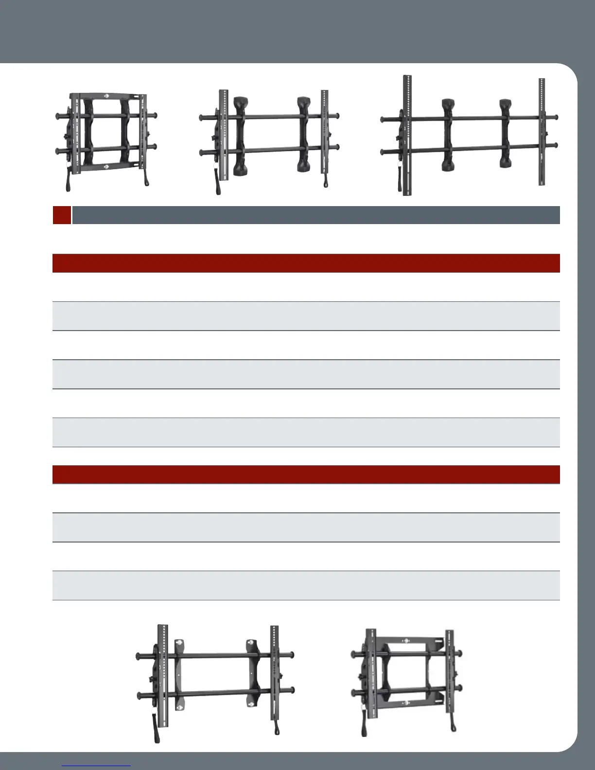 XTM 55 - 75” 1.99” (51 mm) 23.5” (597 mm) 0-12˚ 25.6” (650 mm), 250 lbs (113 kg)