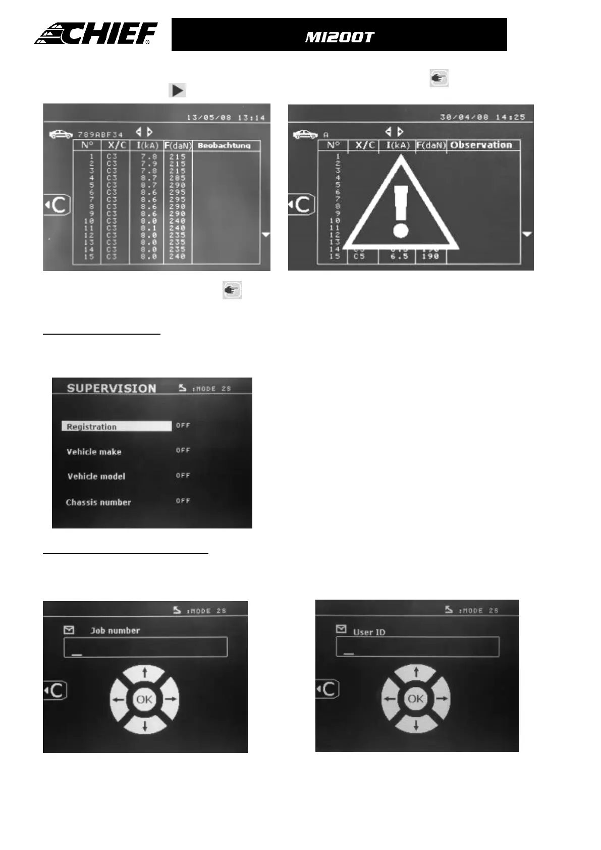 Screen: « Job number » Screen: “User identification”