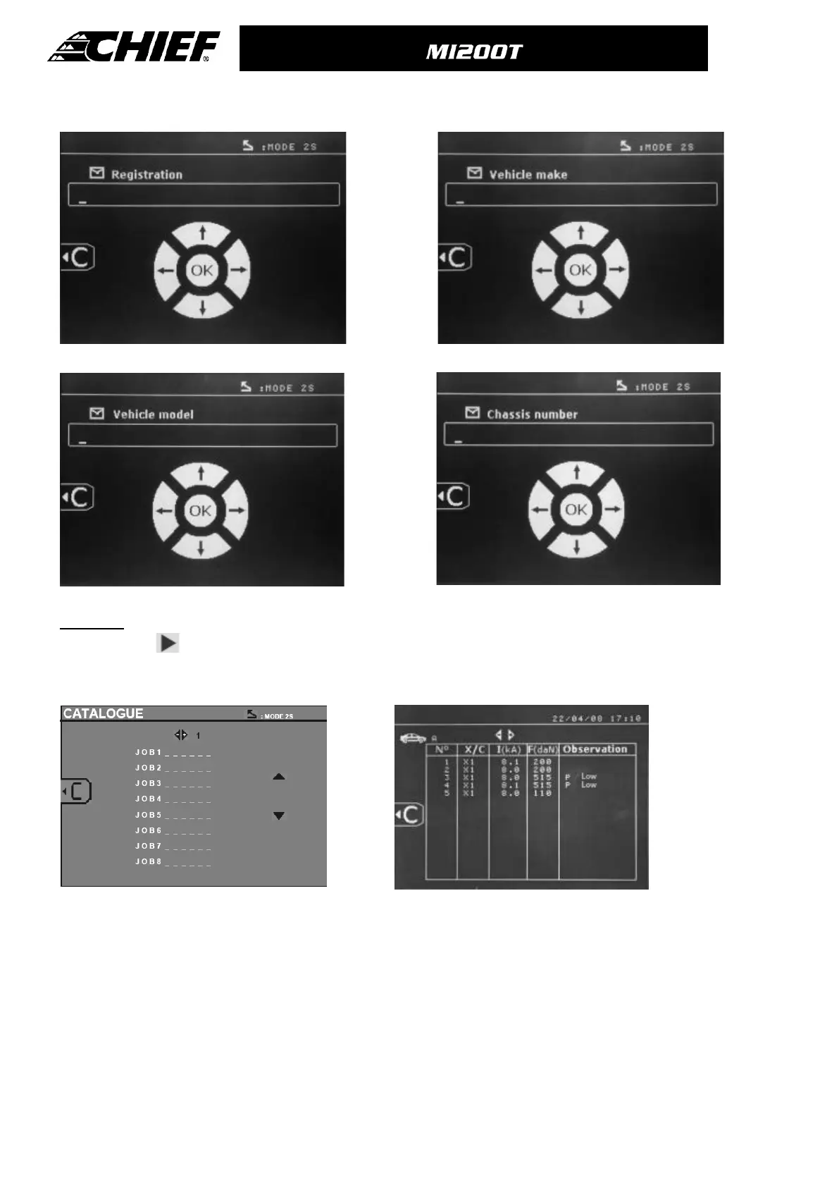 Screen: « Vehicle model » (optional) Screen: Chassis number (optional)