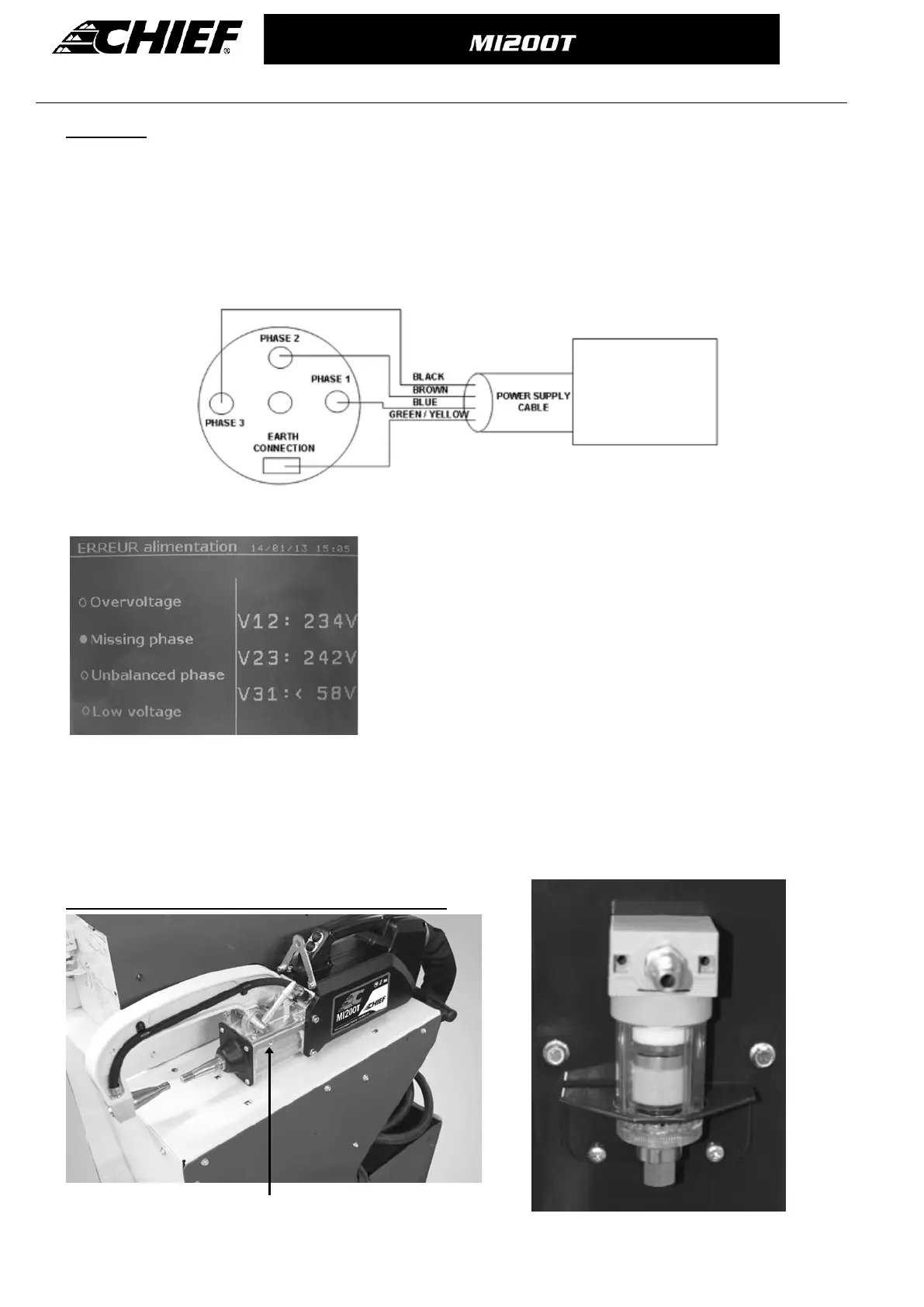 - In case of bad connection or bad voltage on the electrical line, the following screen will appear :