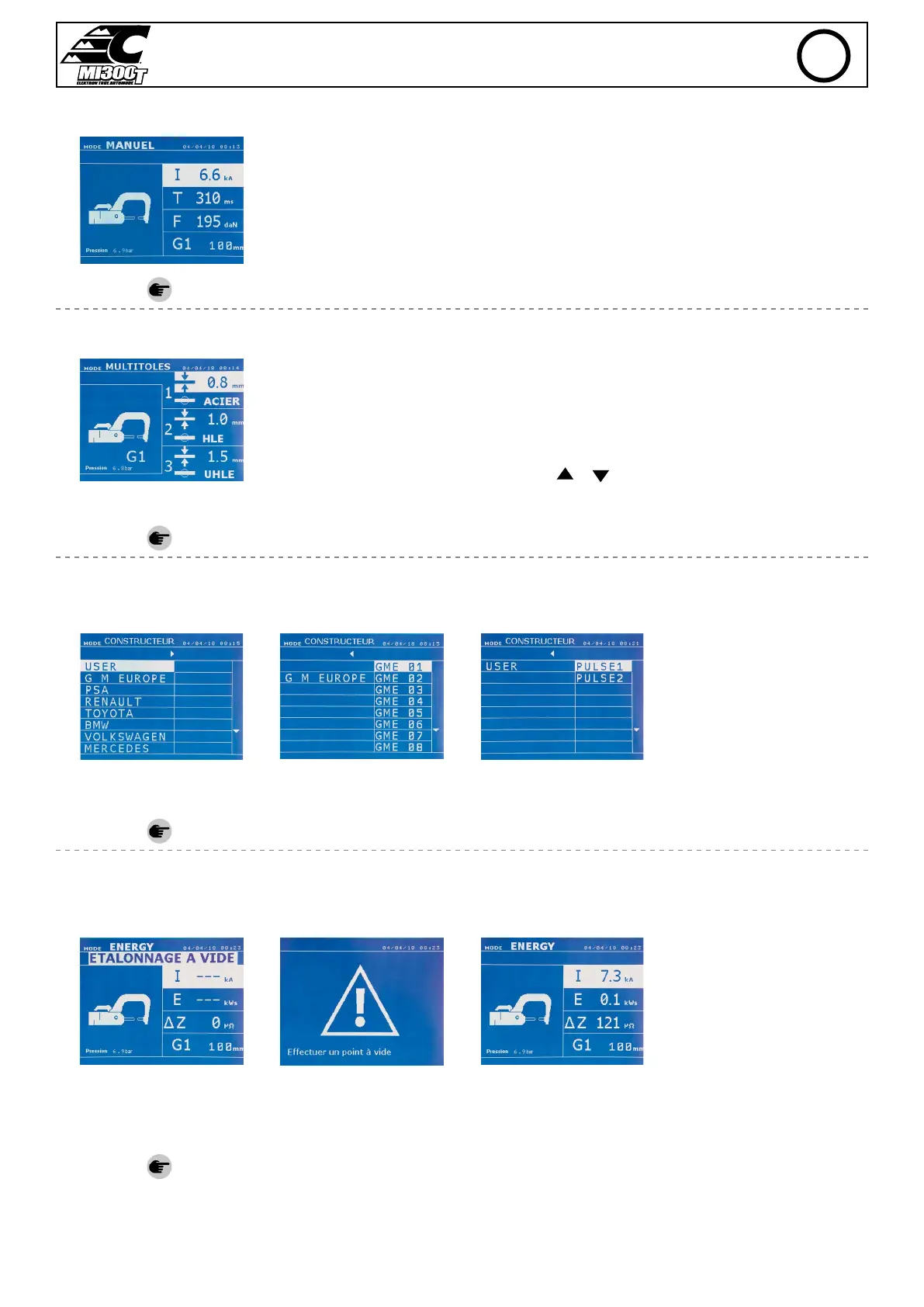 This mode is used to select the parameters of the spots by following the instructions of a repair book.