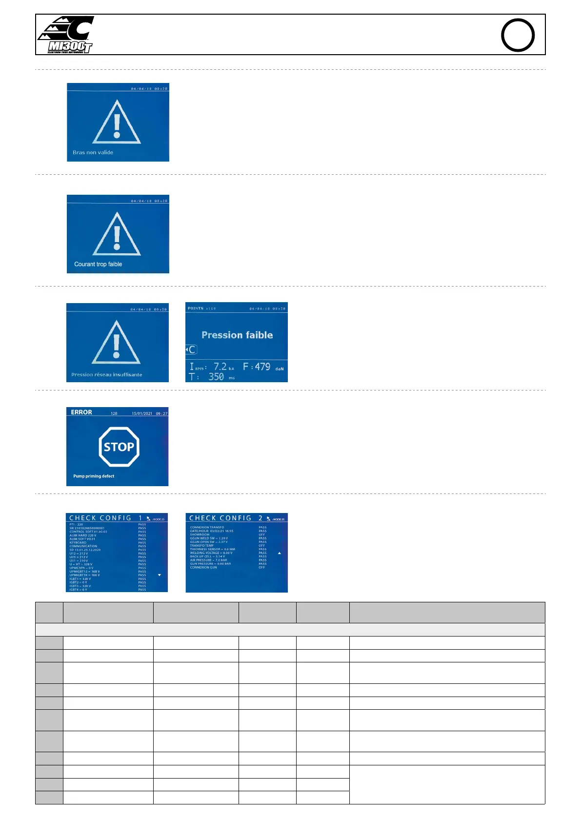 4 Hard primary version ALIM HARD 400V PASS or FAIL Blocking Wrong power supply card, contact your dealer.