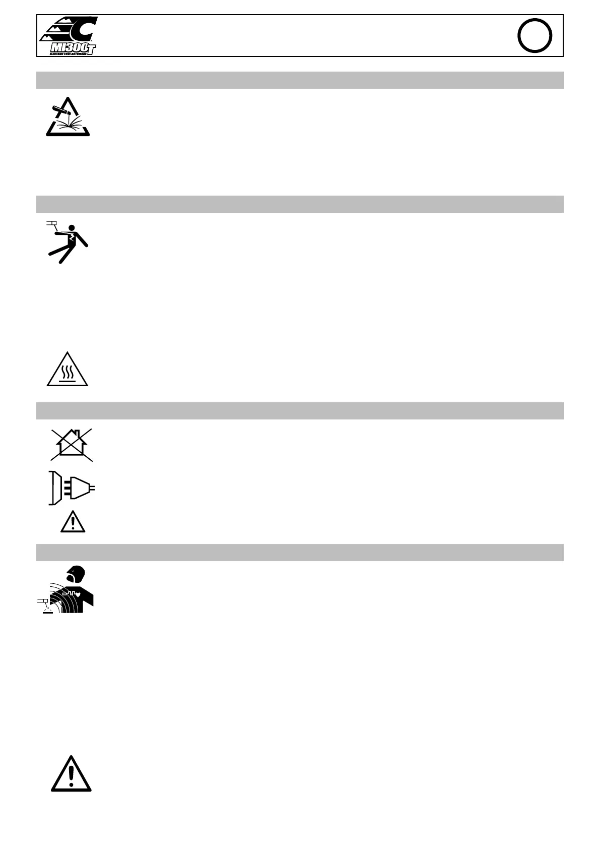 Atención a las proyecciones de materiales calientes o chispas incluso a través de las suras. Pueden generar un incendio o una explosión.