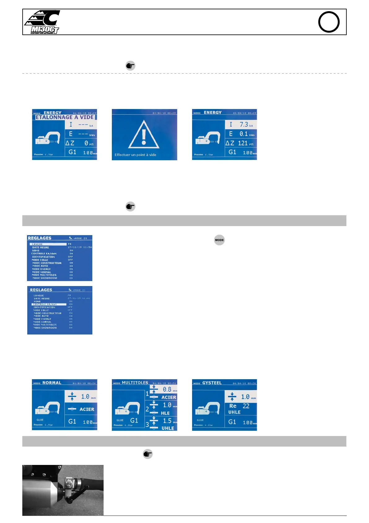 de 50 ms. Cuando se selecciona el modo Pegamento, la mención «Glue» aparece en los menús de soldadura NORMAL, MANUAL, MULTI o GYSTEEL.
