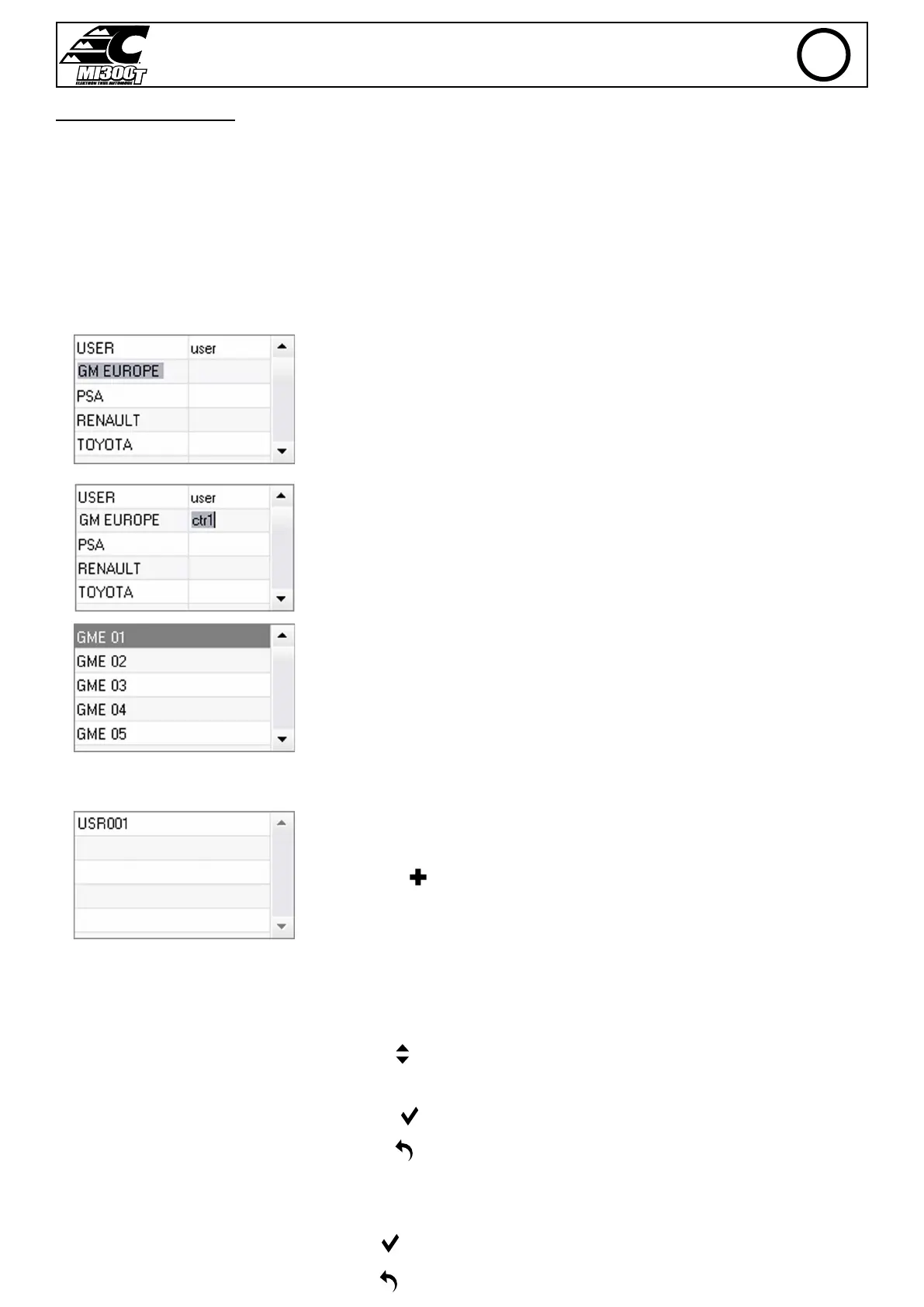 - El primer archivo llamado «USER» no se puede suprimir. Permite al usuario añadir, modicar o suprimir un parámetro de punto.