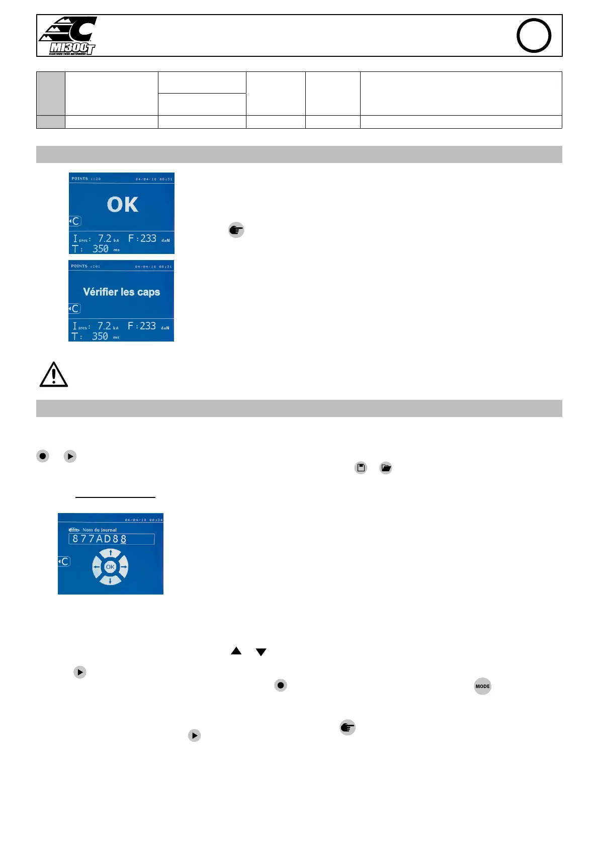 Le journal permet de mémoriser les paramètres des points réalisés avec la pince. Il est disponible depuis tous les modes, par appui sur les 2 touches