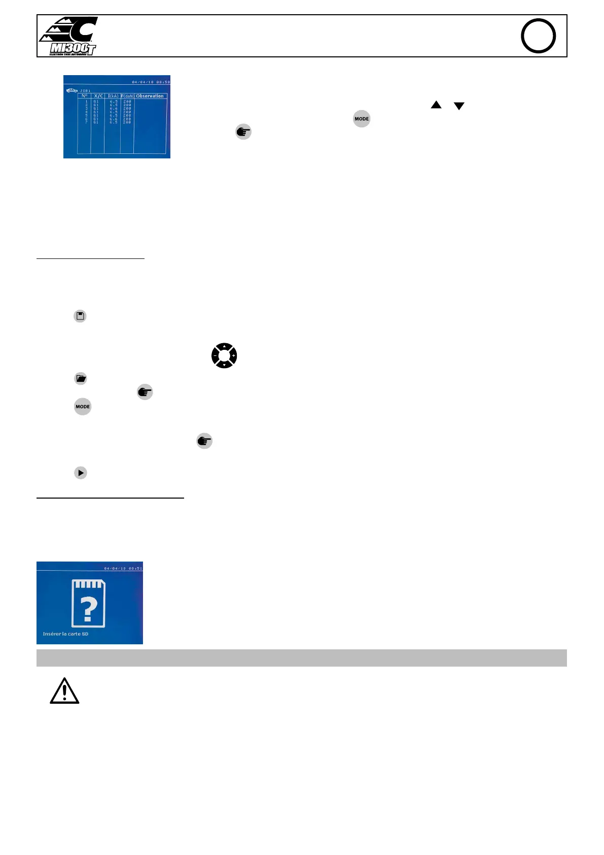 Le poste peut fonctionner sans carte mémoire en mode « manuel » uniquement.
