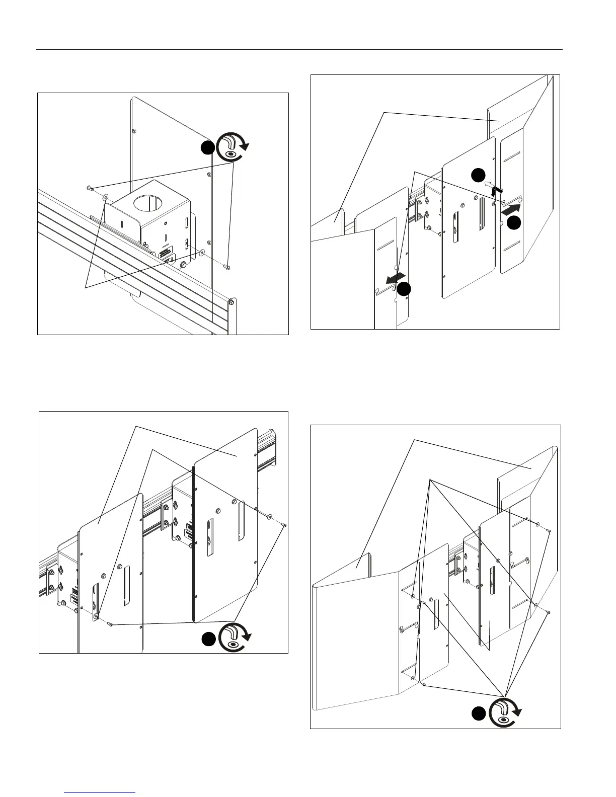 4. Hang two side wind shields (J) onto screws loosely installed
