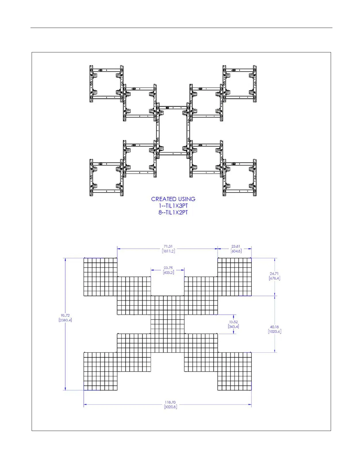 The following are just two examples of the many configurations which are possible with the PT Series wall mounts.