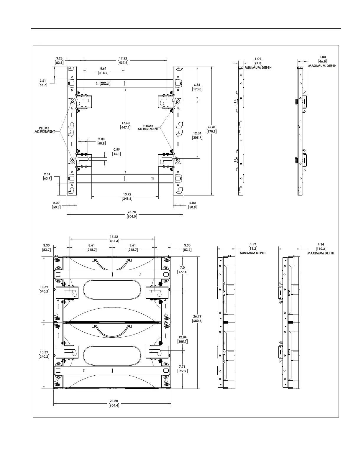 CHIEF PT Series - Dimensions and Specifications; TIL1 X2 PT Model Dimensions