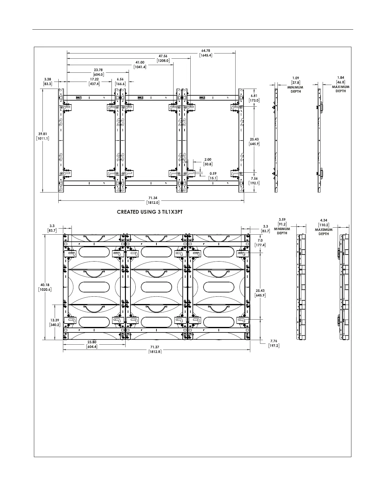 CHIEF PT Series - Tiled 3 x3 Configuration Dimensions