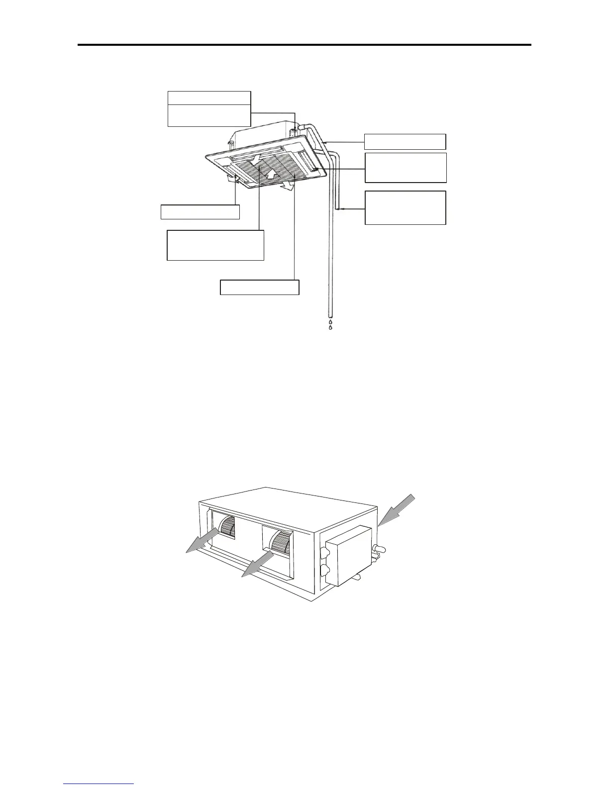 Chigo CMV - Air Conditioner Part Name and Functions; 4-way Cassette Type Components; High Static Pressure Ducted Type Components