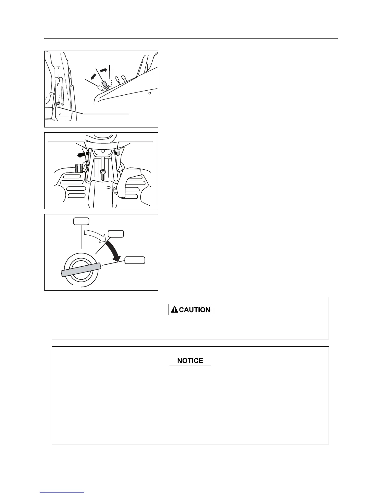 • If the engine does not start, do not crank the starting motor continuously for more than 5