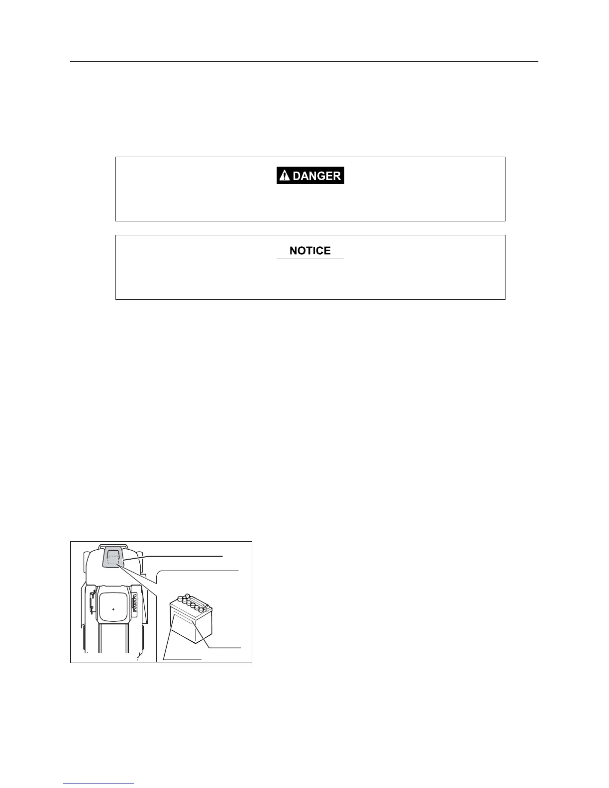Do not store the vehicle, battery, or fuel near open flames or in a high temperature
