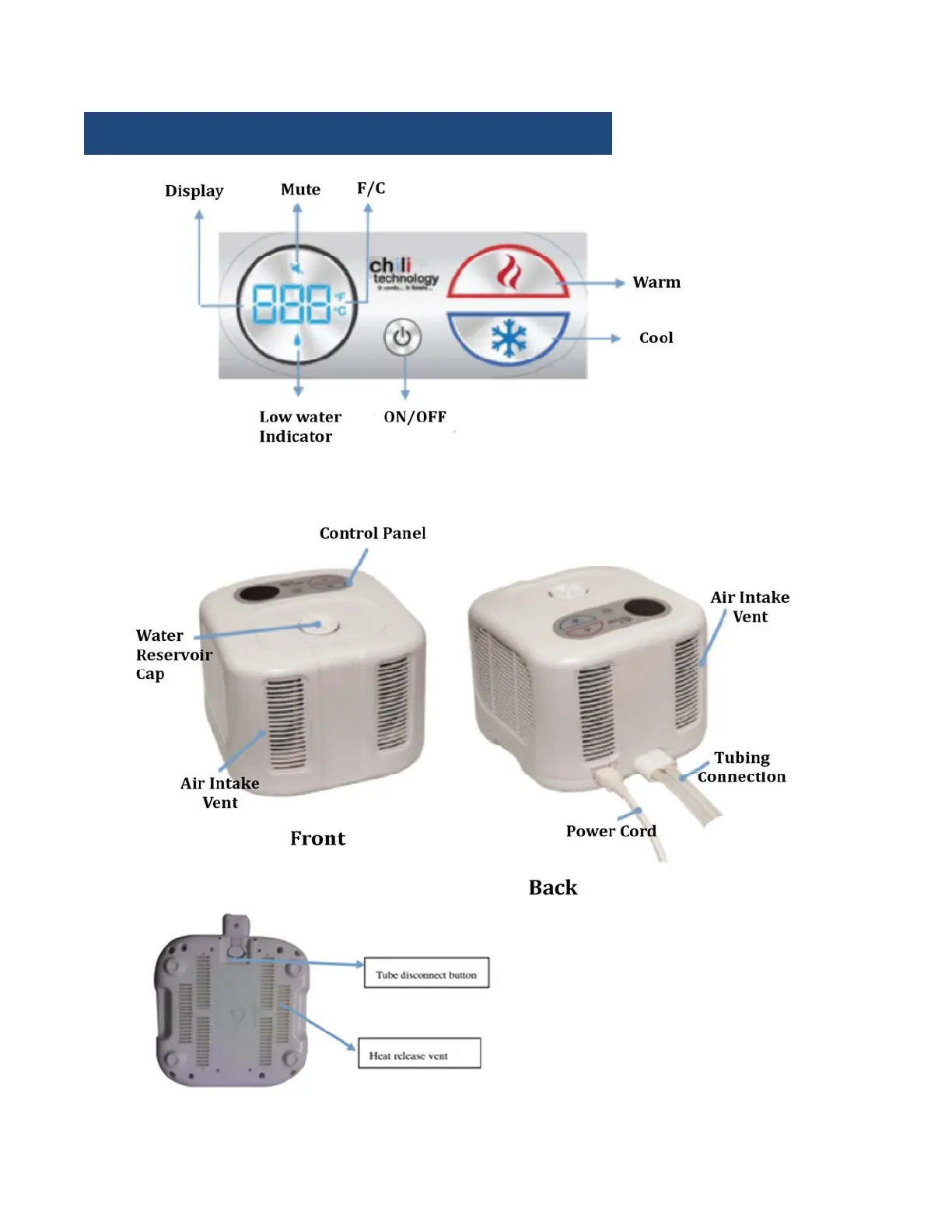 Chili Technology ChiliPAD cube Single Zone - Using the ChiliCube; Control Panel Overview; Cube Physical Features