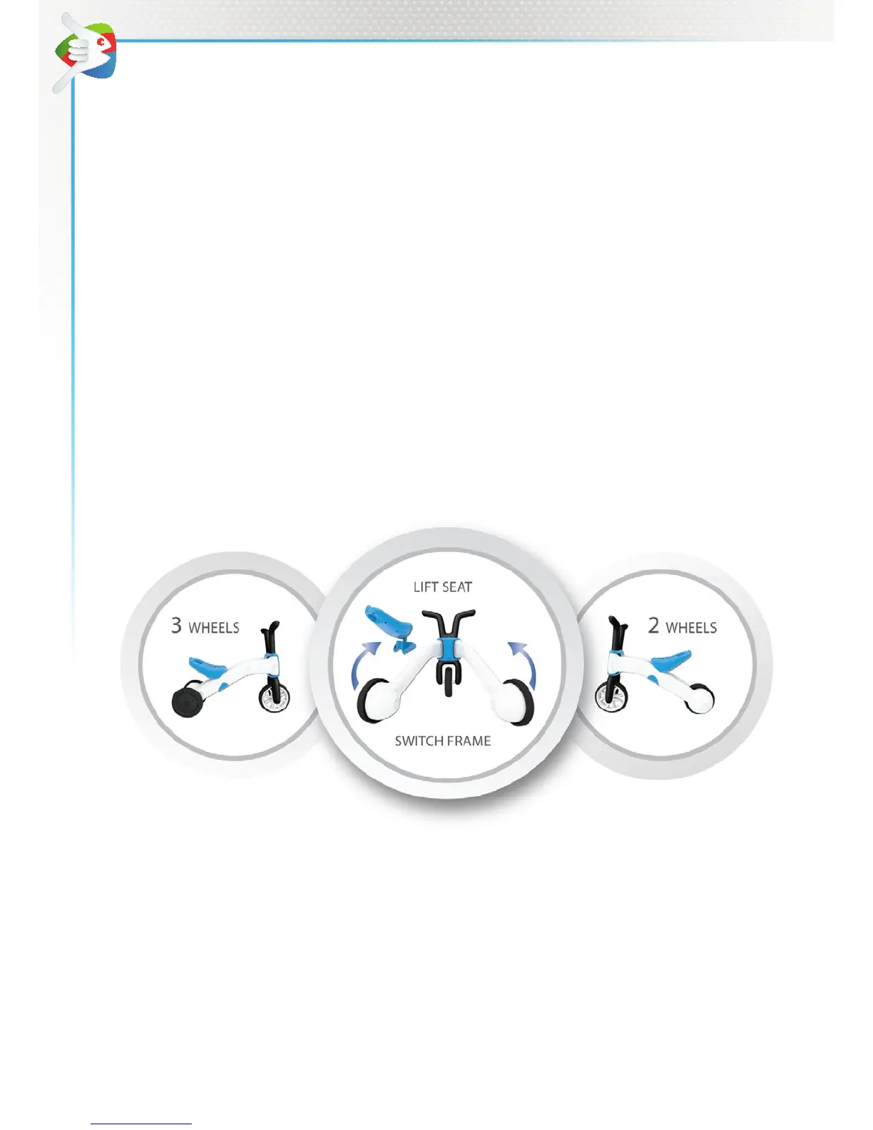 Omschakelen tussen 3-wiel en 2-wiel modus vergt geen gereedschappen. Volg