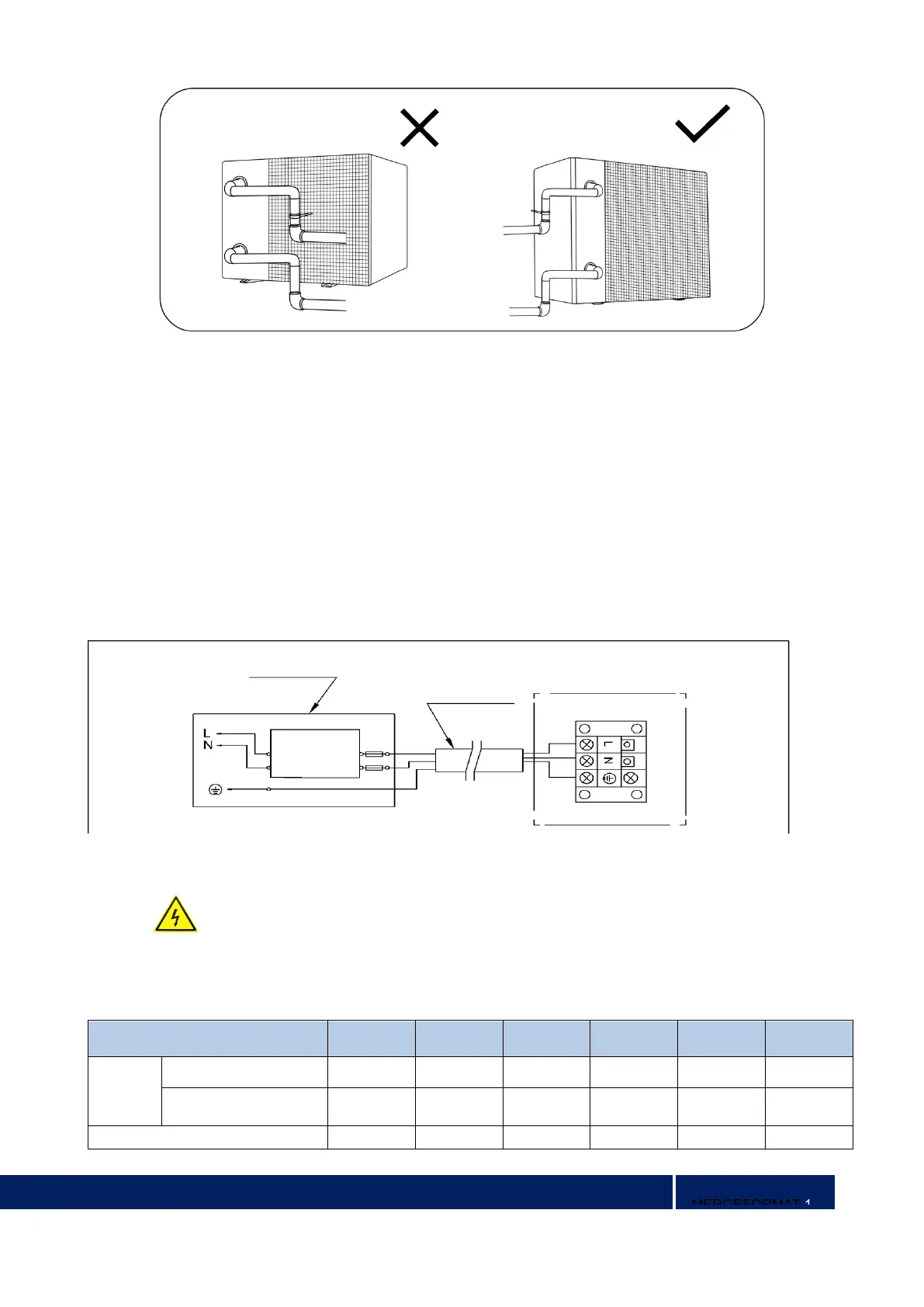 d. Set leakage protector according to the local code for wiring (leakage operating current ≤ 30mA).