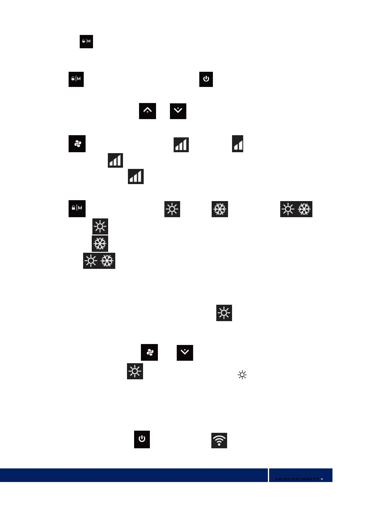 Press “ ” to switch among heating ” ”, cooling ” ” and auto mode ” ”.