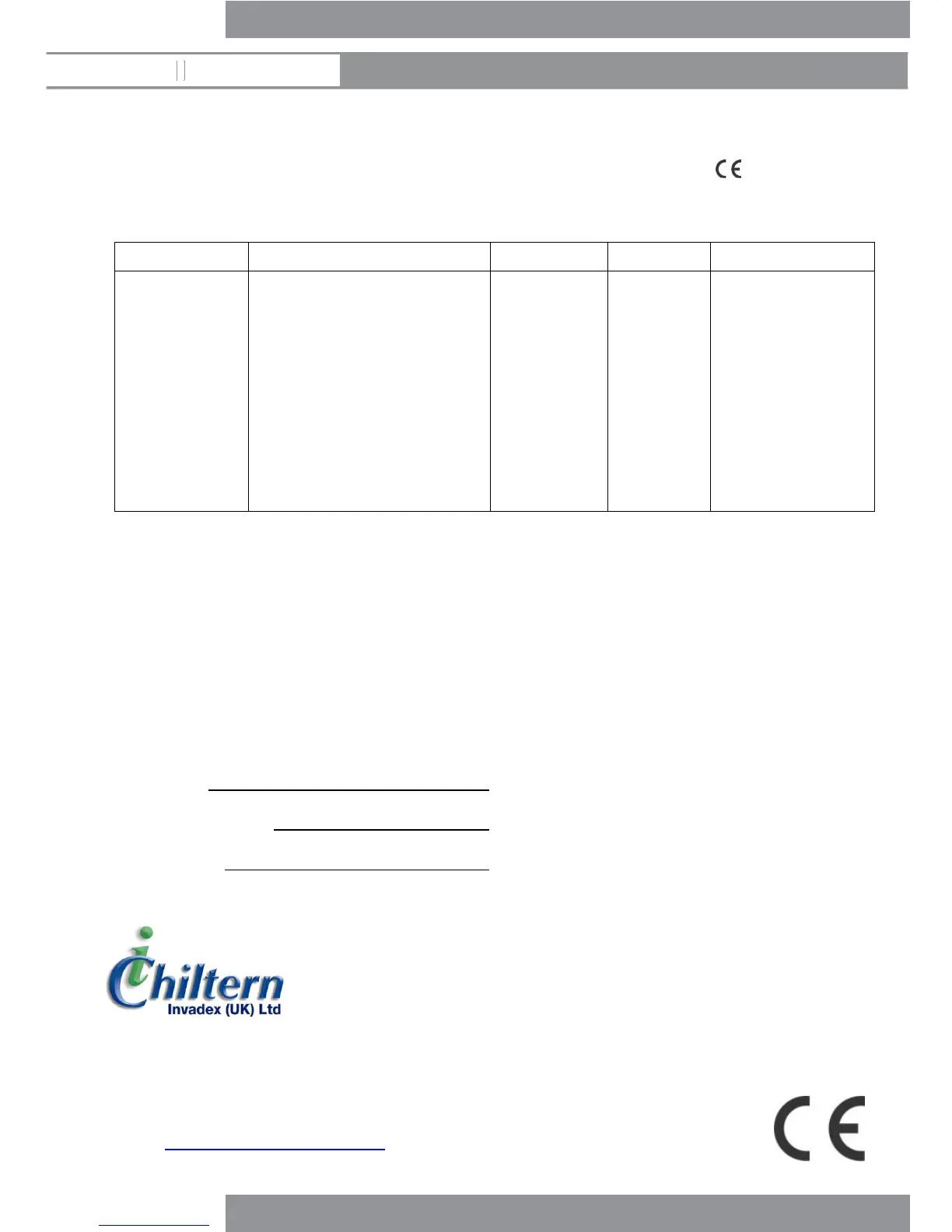 Chiltern Invadex (UK) Limited hereby declare the products identified below are Class 1 Medical