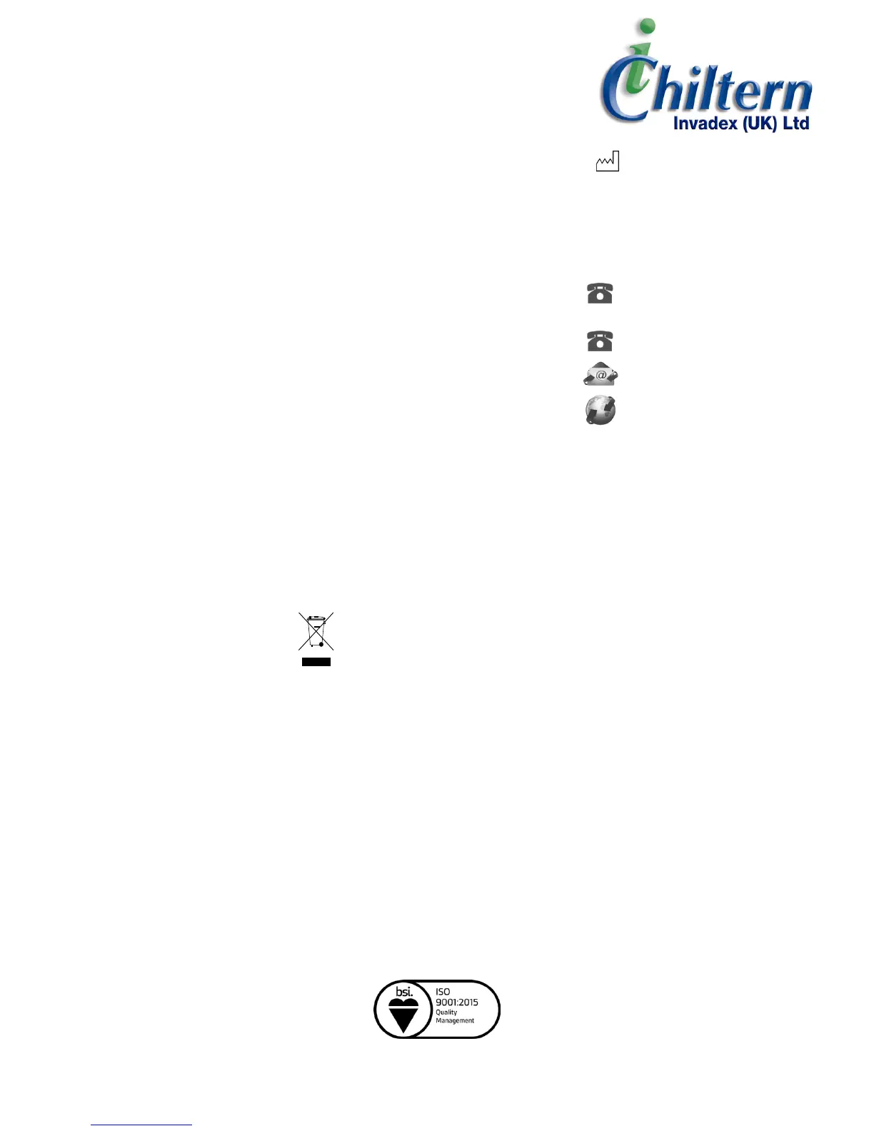 Co p yr i ght © C hil t er n In v ad e x (UK) Ltd The design of the product shown in this guide is vested in Chiltern Invadex (UK) Ltd and should not be copied or reproduced in anyway