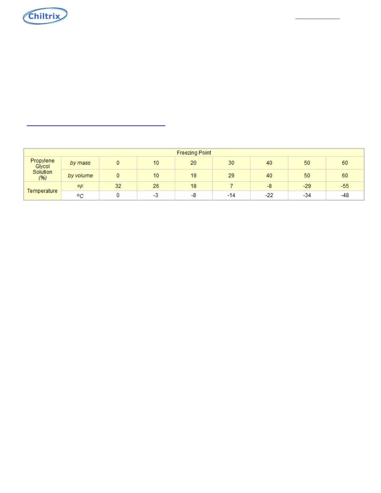 Below is a Freezing Point Chart For Propylene Glycol Mixed w/ Water