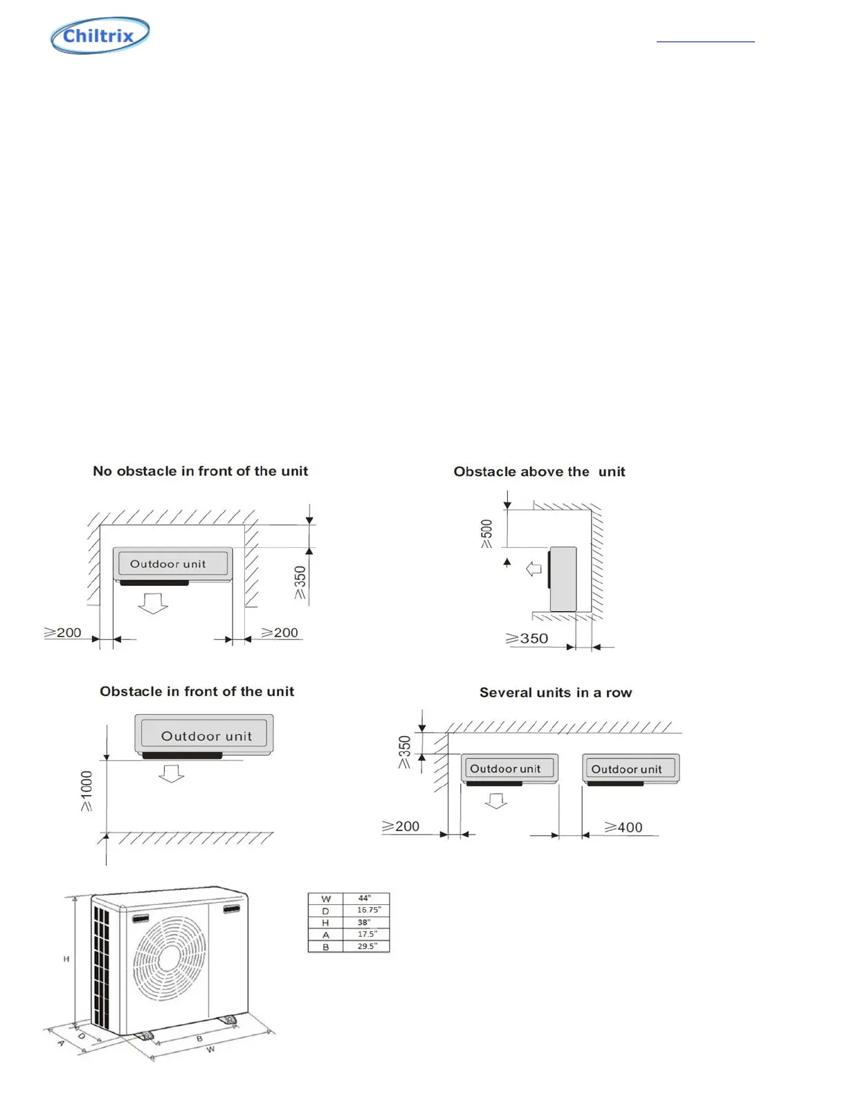 Adequate service clearance should be kept around the unit. The unit should not be installed in places