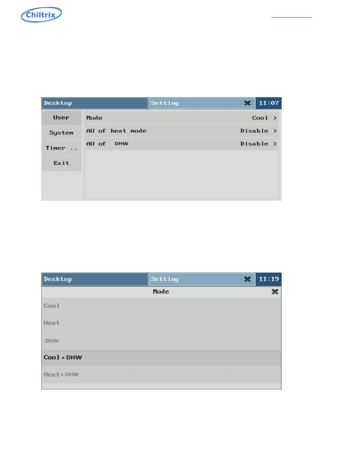 Dynamic Outdoor Reset (p. 57) and AU DHW Mode is not used on the CX34 and should be disabled