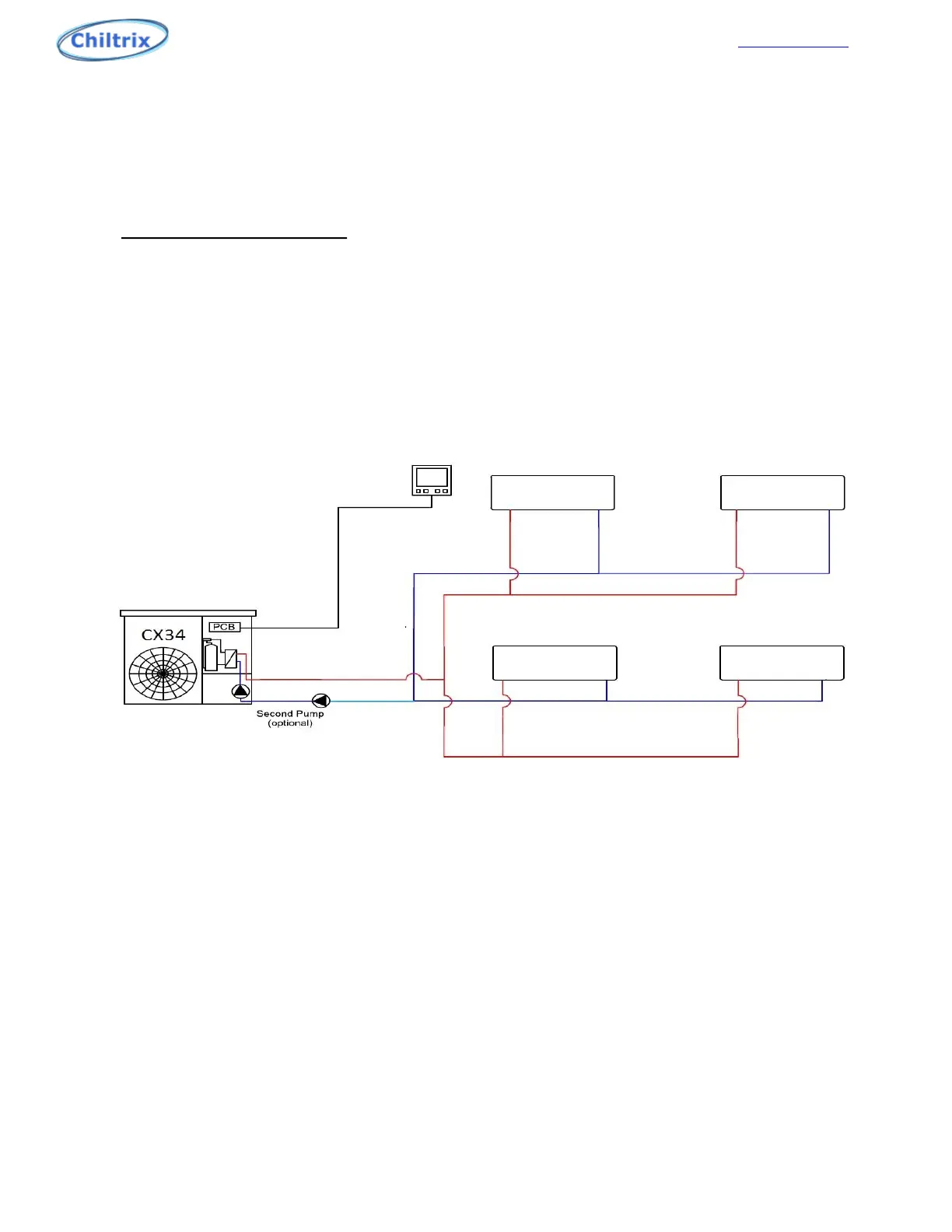 flow is 4.8 gpm. If necessary, a second Chiltrix-provided PWM pump may be added to the loop and controlled by