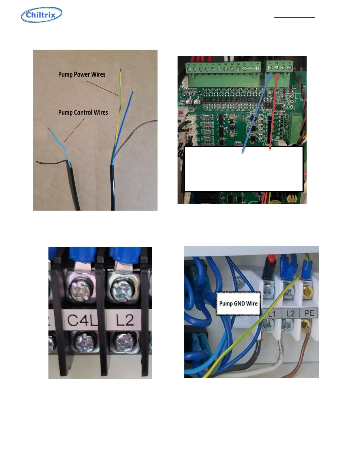 Chiltrix CX50 - Pump Wiring Connections; Power and Control Wire Connections; Pump Ground Wire Connection