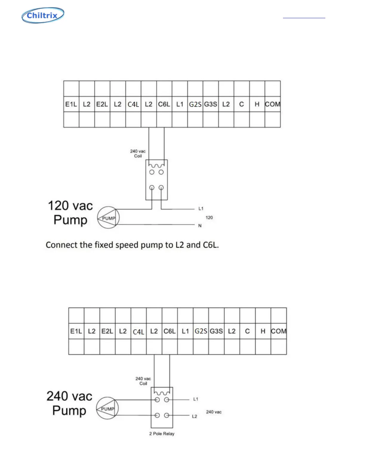 power only. Do not connect a pump directly to L2 and C6L, always use a relay with a 240